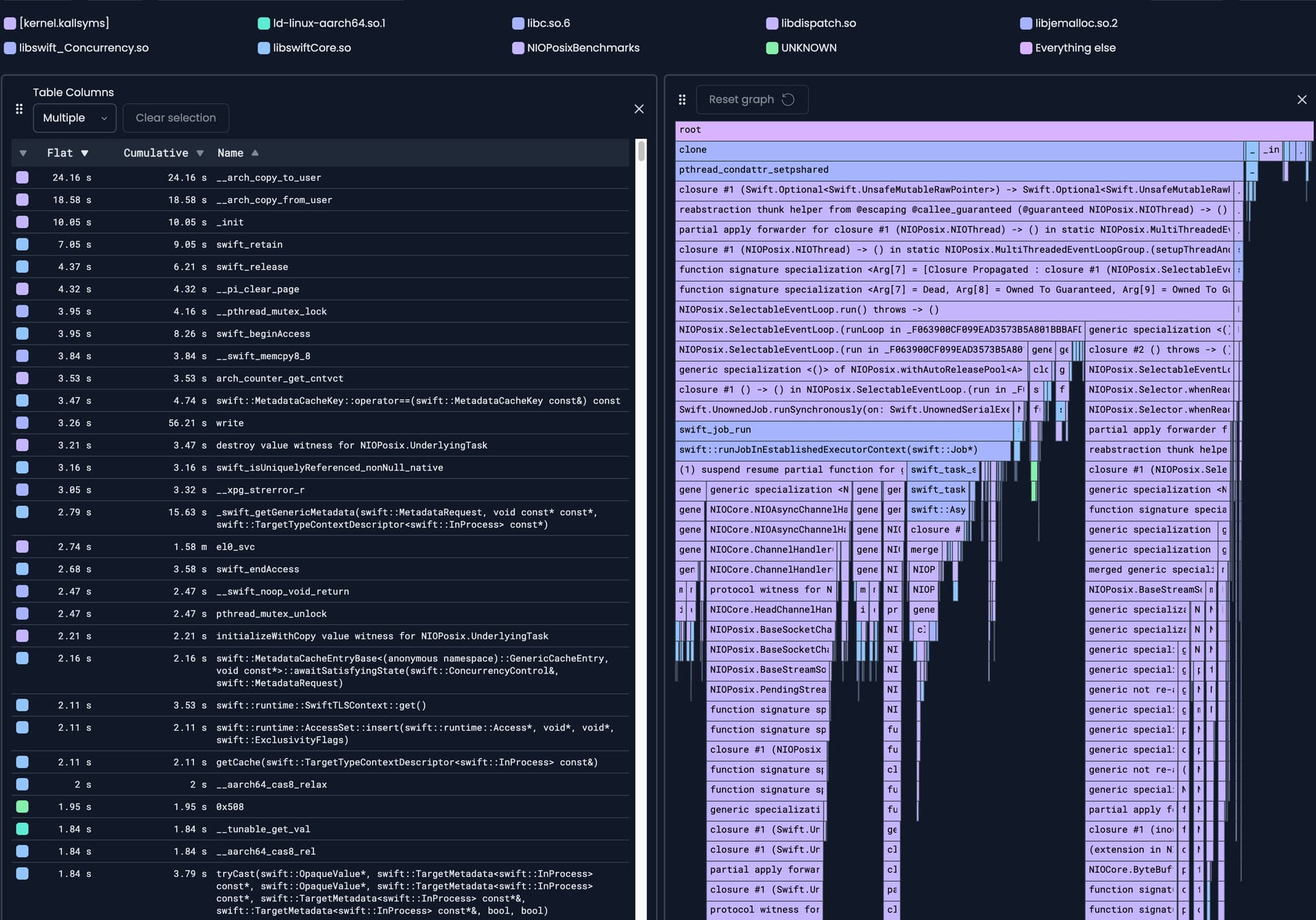 At Ordo One, we’vebeen using perf_events + FlameGraph for a number of years to investigate Swift performance on Linux, but the manual sampling approach has limitations - you need to know when and what to profile, making it reactive rather than proactive.